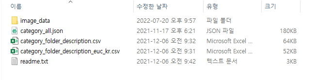 생각보다 데이터셋 규모가 좀 커서 놀랐습니다. 공간을 충분히 확보해두셔야합니다..!