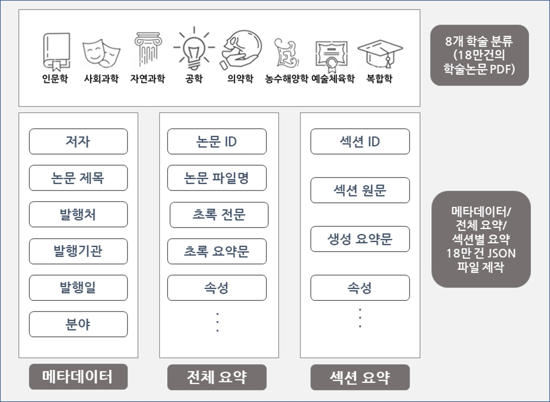 논문이나 특허의 경우 텍스트가 상당히 많고, 모두 읽기에는 시간이 많이 부족한데요, 이 데이터셋을 이용해서 만약 학습을 효과적으로 수행한다면 많은 텍스트를 읽고 연구개발해야하는 사람들에게 큰 도움이 될 것 같습니다.