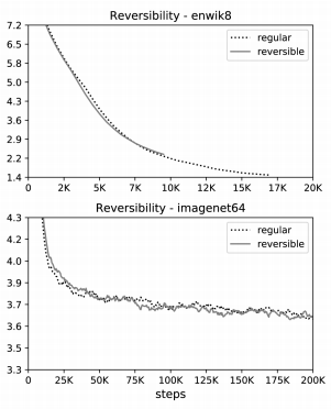 LSH와 RevNet을 적용한 것이 성능에 어떠한 영향을 미쳤는지 결과적으로 살펴봅시다.