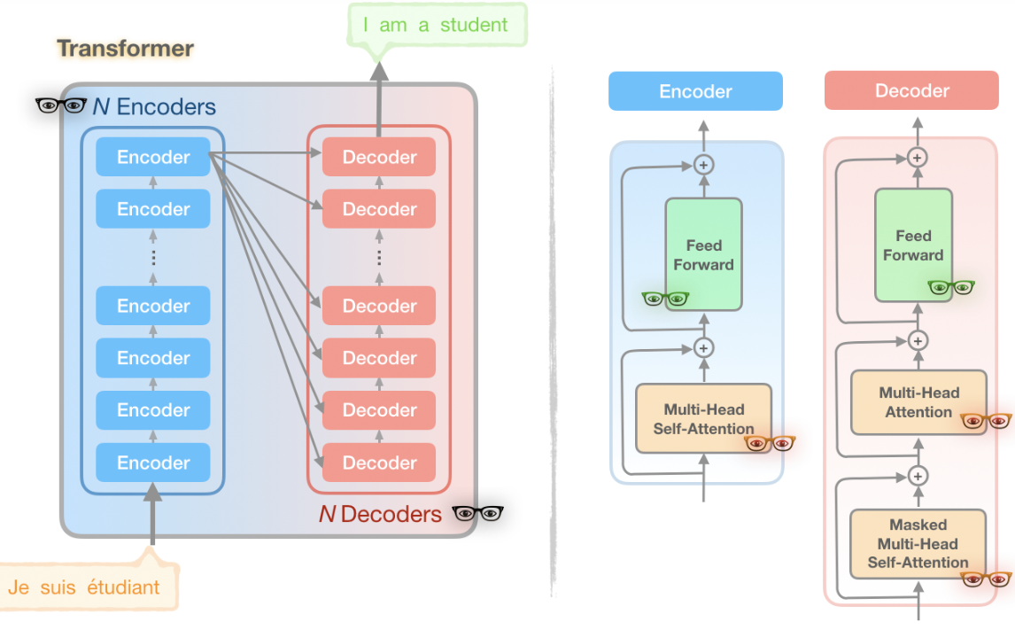 Reformer의 저자는 트랜스포머의 메모리 문제를 지적하였습니다. 그 부분들을 위 그림에서는 안경으로 표시했습니다. (위 레퍼런스에 자세히 설명되어있습니다.)