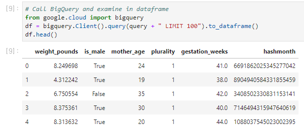 - Table ID: bigquery-public-data:samples.natality