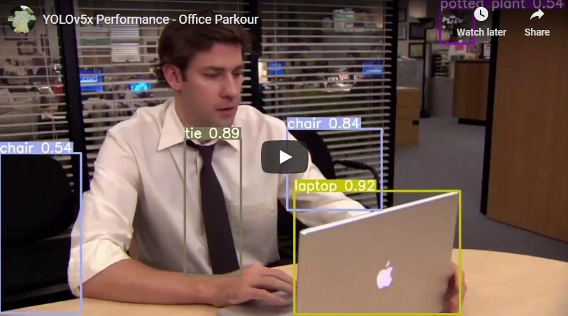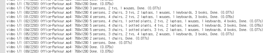 YOLO v5 모델로 Object Detection(객체 인식) inference(추론) 해보기 - 미드 office parkour 예제 동영상